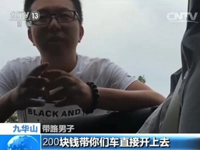 除了这些人冒充景区工作人员,诱骗大家烧高价香之外,在安徽九华山,开车进入景区,也成了一些人的敛财手段。